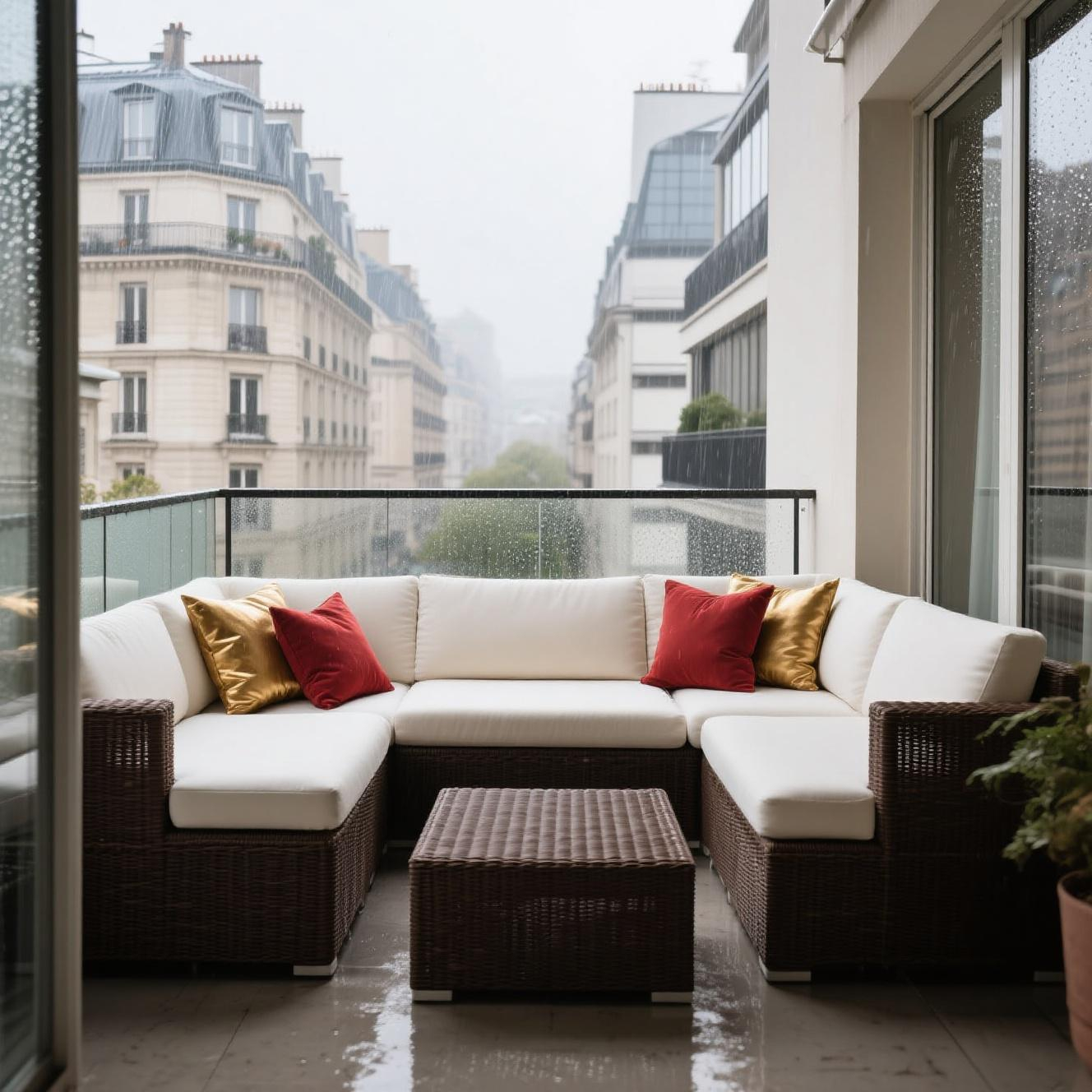 Le Canapé en rotin en forme de L est conçu pour résister aux éléments extérieurs, mais il est conseillé de protéger vos meubles du soleil direct et de l'humidité excessive. Une housse de protection est idéale pendant les périodes de pluie ou lorsque les canapés ne sont pas utilisés pendant un certain temps. Cela permet de préserver la couleur et la solidité du rotin.