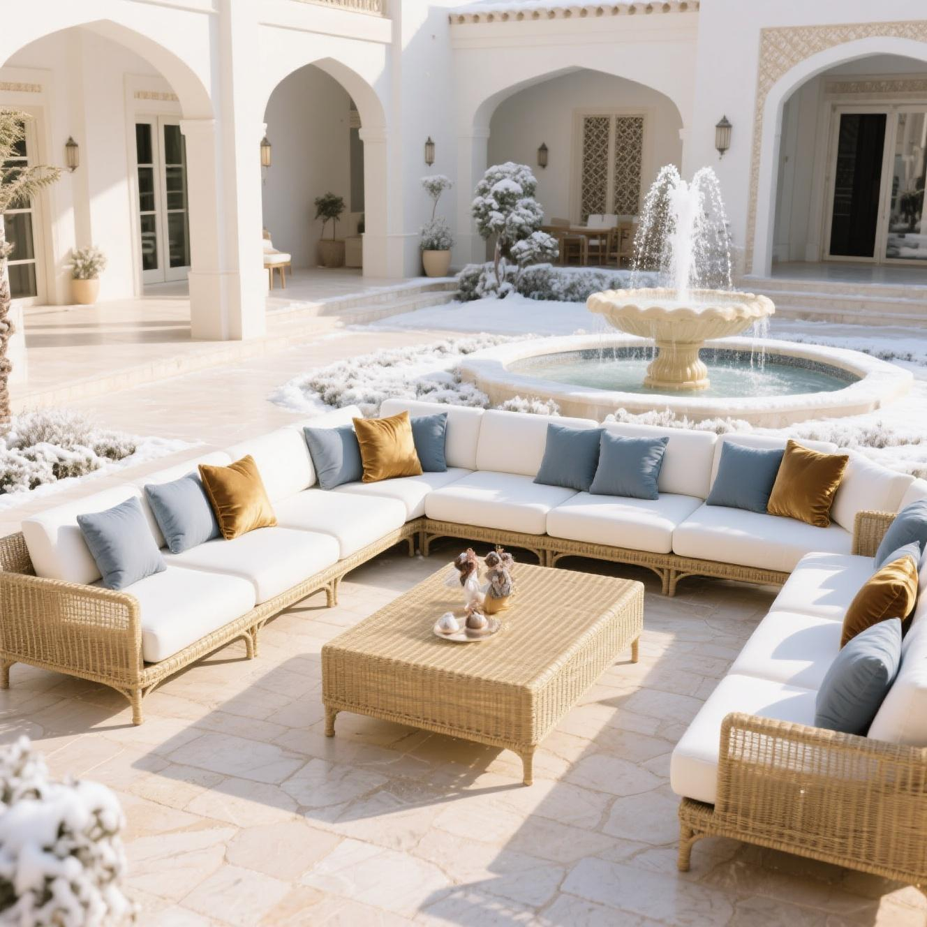 تقديم مجموعة استراحة خارجية فندقية مدمجة بتقنيات مقاومة للتغيرات المناخية.